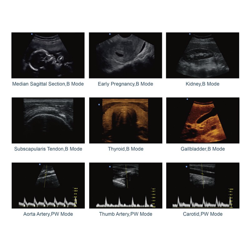 B, B/B, 4B, M, B/M, PW (tikai ECO2, ECO3EXP.) vairāku frekvenču attēlveidošana.